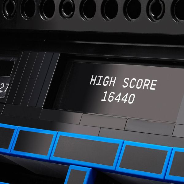Множество ретро-функций — в шкафу есть четырехпозиционный джойстик, слот для монет БЕЗ ПОДСВЕТКИ, регулируемый дисплей для очков игры и механический лабиринт, имитирующий классическую погоню между игровыми персонажами. Размер собранной модели: Высота: 32 см, Ширина: 25 см, Глубина: 17 см.