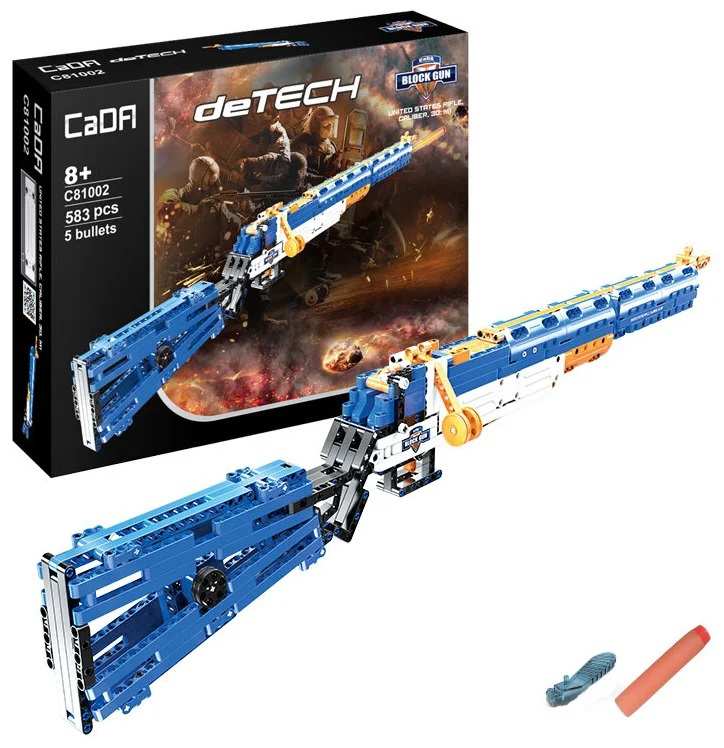 Конструктор Cada Винтовка М1 - копия американского лёгкого самозарядного карабина Carbine US Carbine, Caliber .30, M1 времен Второй мировой войны. Винтовка М1 впечатлит не только мальчишку, но и настоящего мужчину. Процесс сборки настолько увлекательный, что надолго займет ребёнка. Конструктор винтовки поражает своей детализацией и точностью. Винтовка стреляет мягкими пульками, не наносящими вред здоровью. В комплектации имеется подставка, превращающая винтовку на подобие пулемета.