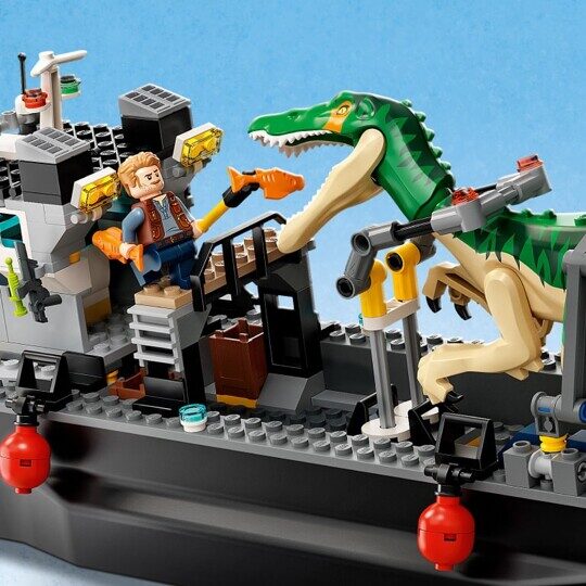 - 4 минифигурки Дариуса, Ясмины, Оуэна Грэди и охранника, большая фигурка барионикса, маленькая уже вылупившегося детеныша, ящик с кладкой яиц